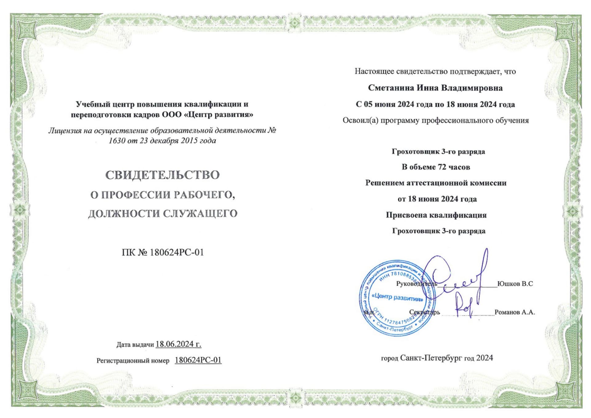 Документы об окончании курса и «корочки» о полученной профессии высылаются в ваш адрес Почтой России. При необходимости скан-копия высылается на электронную почту в день окончания курса обучения.